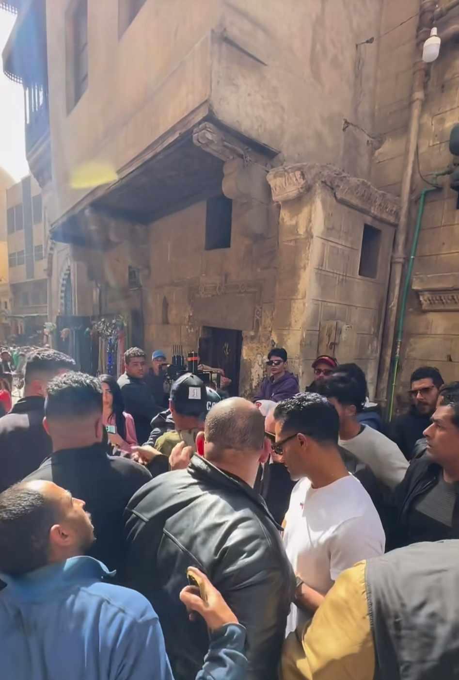 وظهر محمد رمضان خلال مقطع الفيديو وهو في منطقة الجمالية، ومحاصرة أهالي المنطقة له لالتقاط صور تذكارية معه.