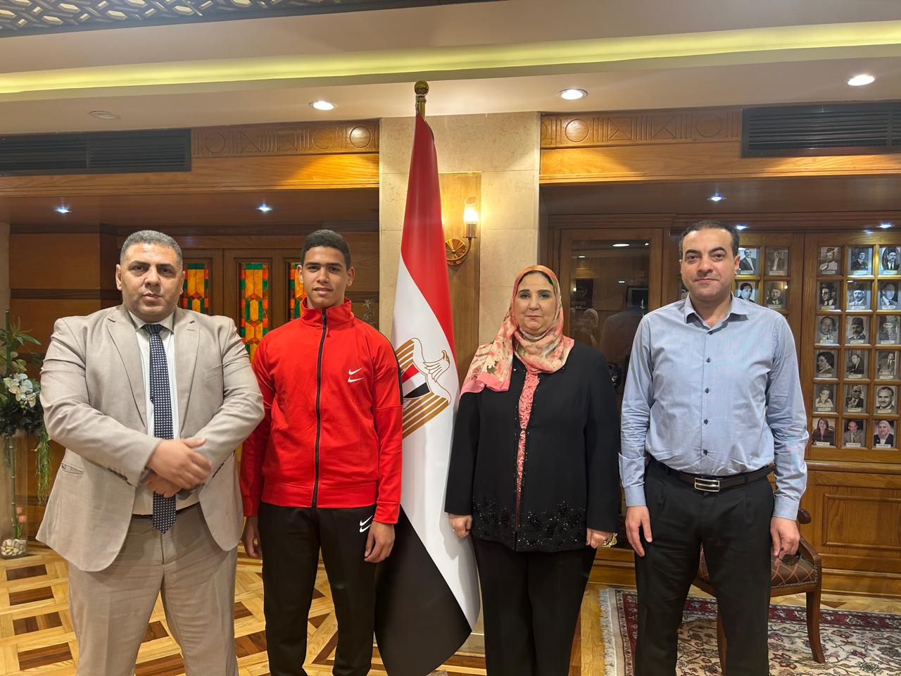 وزيرة التضامن الاجتماعي تستقبل البطل يوسف توفيق وتقدم الدعم لمشاركته في بطولة كأس العالم للكيك بوكسينج