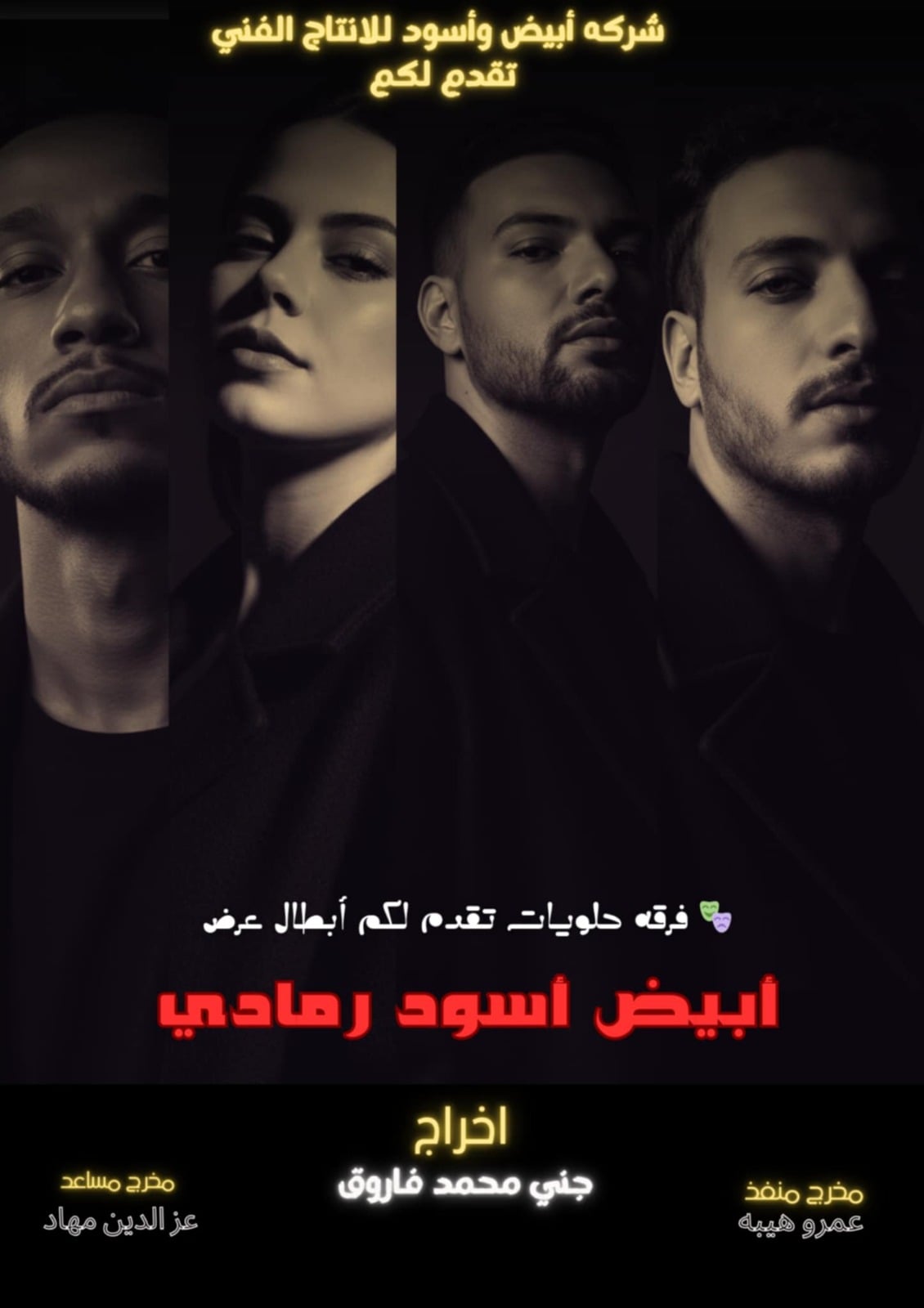 العرض الجديد "أبيض أسود رمادي" من إخراج: جني محمد فاروق، وإنتاج: شركة أبيض وأسود – وجدي محجوب، ومخرج منفذ: عمرو هيبه، ومخرج مساعد: عز الدين مهاد.