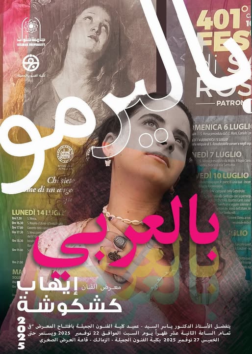 تشهد قاعة العرض الصغرى بكلية الفنون الجميلة بالزمالك يوم السبت المقبل الموافق 22 نوفمبر 2025 افتتاح معرض الفنان (د. ايهاب كشكوشة) بعنوان "باليرمو بالعربي"، والذي يستمر حتى يوم الخميس 27 نوفمبر 2025.