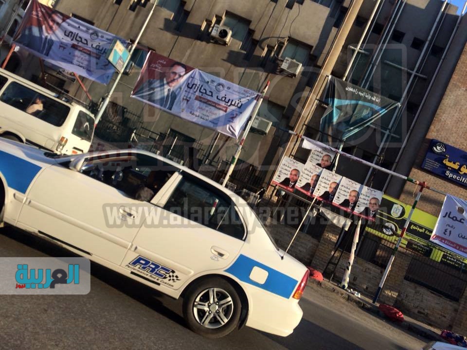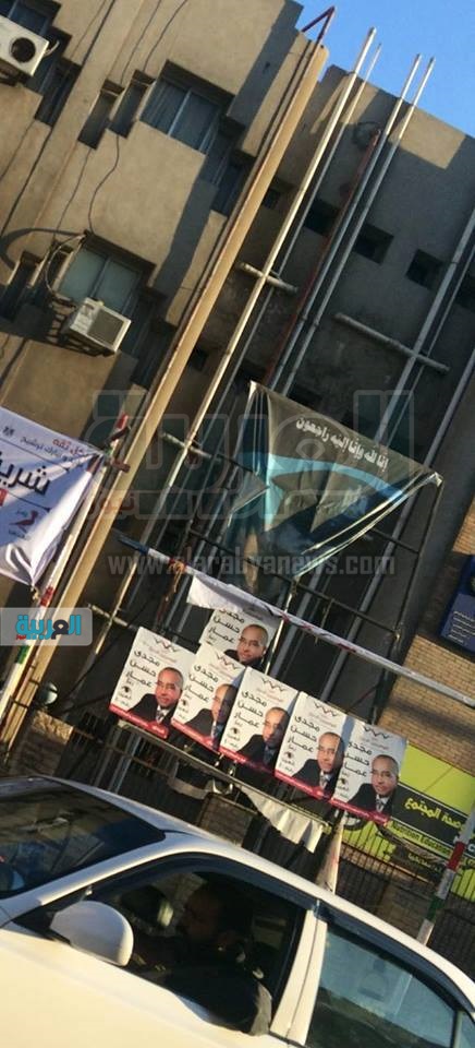 مرشح "المصريين الأحرار" ببورسعيد يزيل صورة "أسد الميدان" لوضع ملصقاته