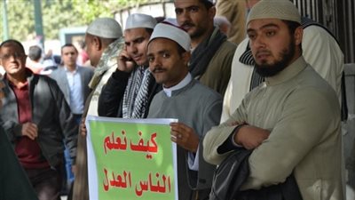 "خطباء المكافأة" يتظاهرون أمام مسجد الفتح